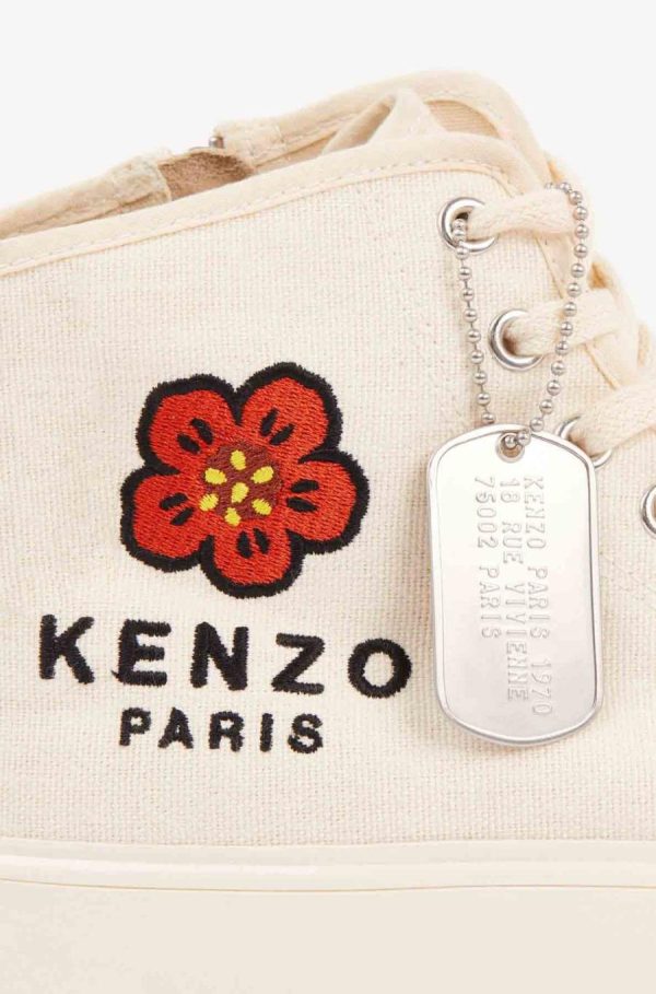 Incontournables des collections de la maison KENZO, les baskets montantes arborent une nouvelle identité pour l’automne-hiver. Le motif emblématique ‘BOKE FLOWER’ et la plaque militaire apportent une note d’originalité à ce modèle.