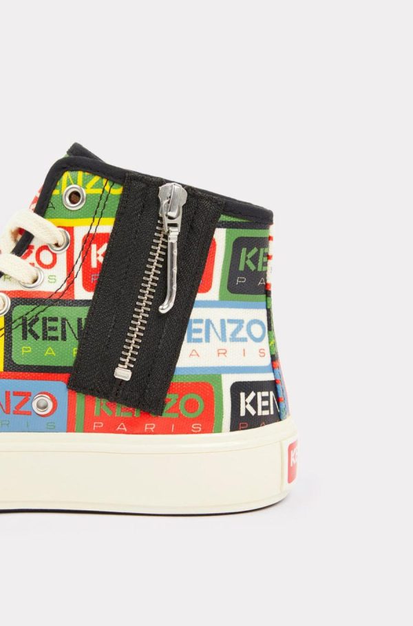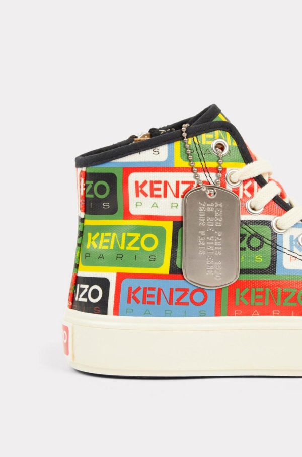 Incontournables des collections de la maison KENZO, les baskets montantes arborent une nouvelle identité pour le printemps-été. Ces baskets montantes sont inspirées d’un défilé KENZO dans les années 80. Multipliant les étiquettes tirées des archives de la Maison, le motif KENZO Labels recouvre entièrement la toile enduite.
