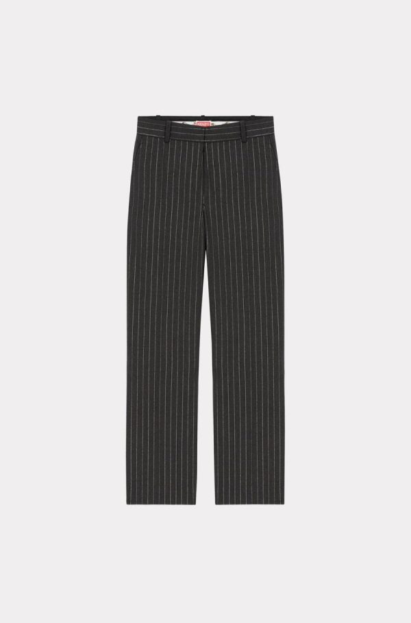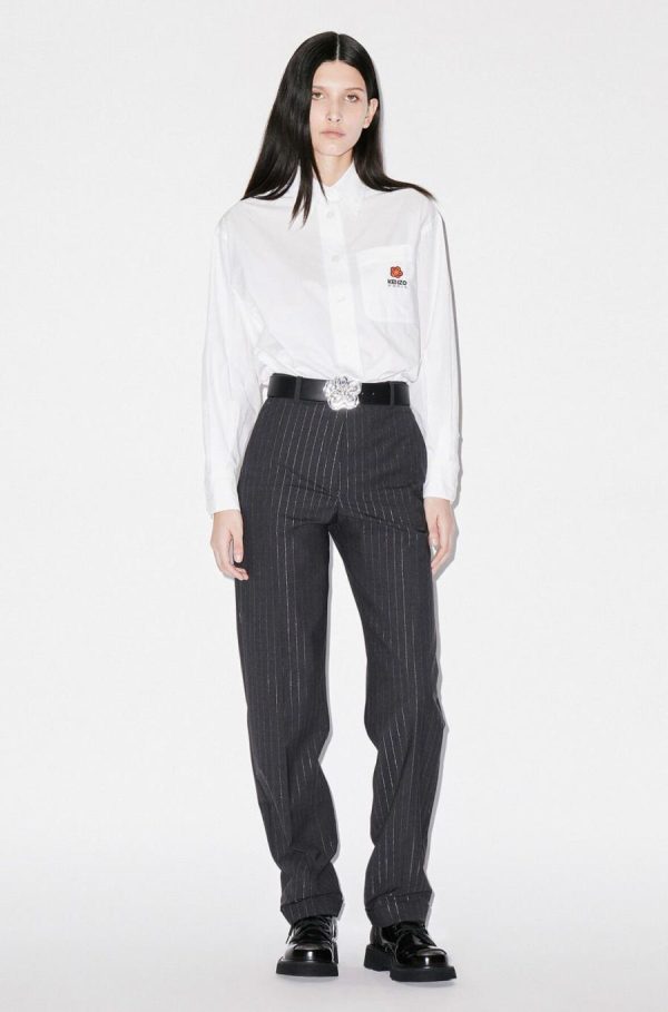 Dans la continuité de la précédente collection, ce pantalon croppé élégant remet le tailoring au goût du jour. Ses fines rayures brillantes s’inscrivent dans un style ‘Glam Rock’. Au dos, le bouton en forme de fleur est une autre signature de Nigo. On le porte avec des derbies ou des bottines pour un look sophistiqué.