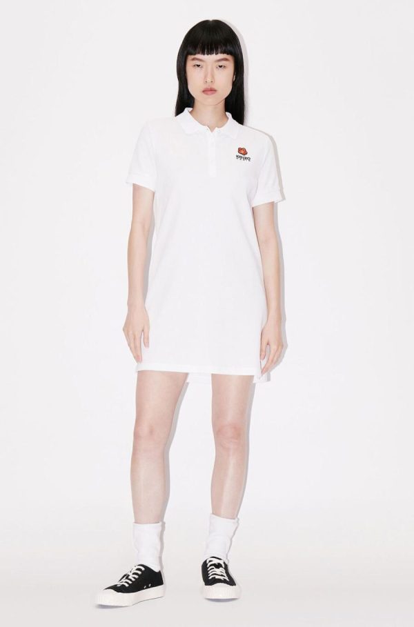Cette robe polo reflète l’esprit casual-chic de la maison KENZO. Conçue en coton organique, elle adopte l’emblématique ‘BOKE FLOWER’ en guise d’écusson brodé, souligné par le logo KENZO Paris. Col boutonné et ourlet fendu sur les côtés rehaussent son style décontracté. On la porte avec des baskets blanches ou colorées pour accompagner ses contrastes de tons neutres et vifs.