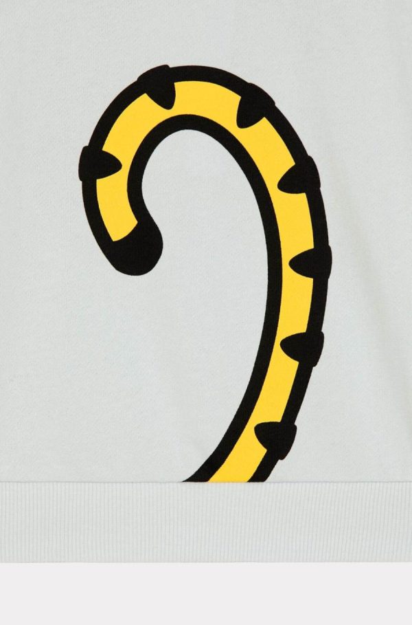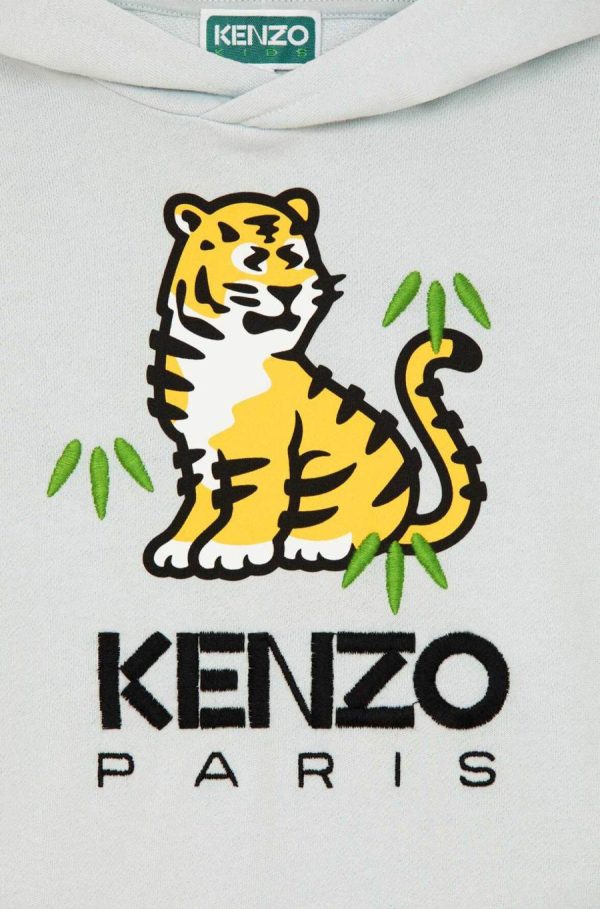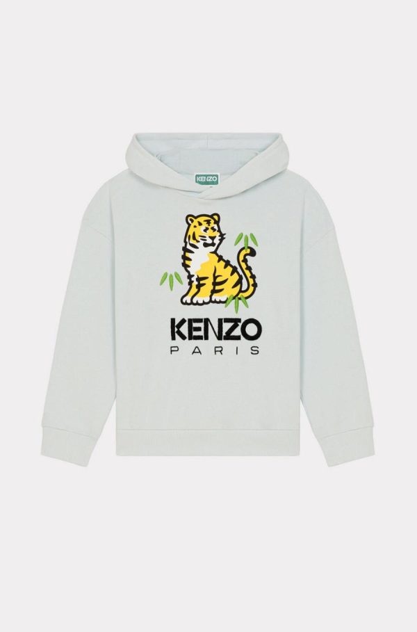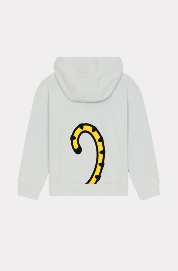 Ce sweatshirt à capuche amusera les plus jeunes avec son imprimé queue de tigre au dos. Le Tigre ‘Kotora’ est quant à lui imprimé devant, rehaussé de feuilles brodées et du logo KENZO Paris, lui aussi brodé.