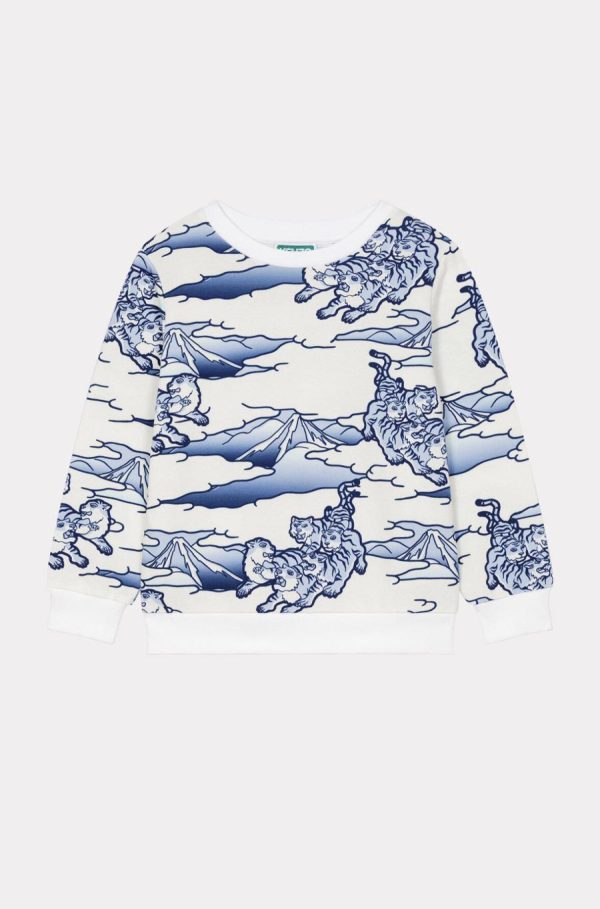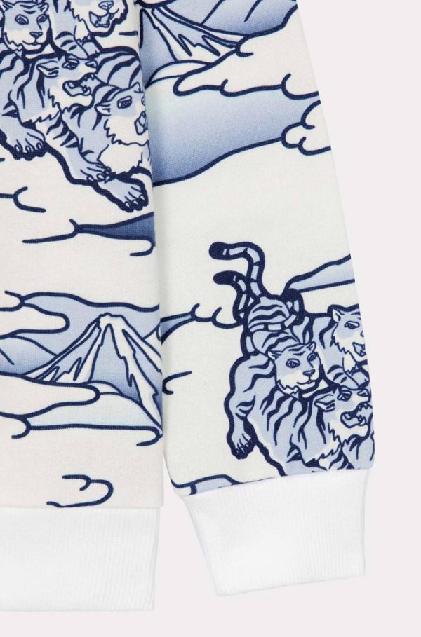 Ce sweatshirt célèbre la nature avec son imprimé en allover représentant une famille de tigres au milieu des montagnes entourées de nuages. Confectionné en molleton non gratté, ce modèle comporte une étiquette tissée KENZO Paris dans sa partie basse.