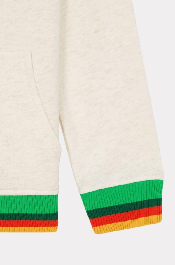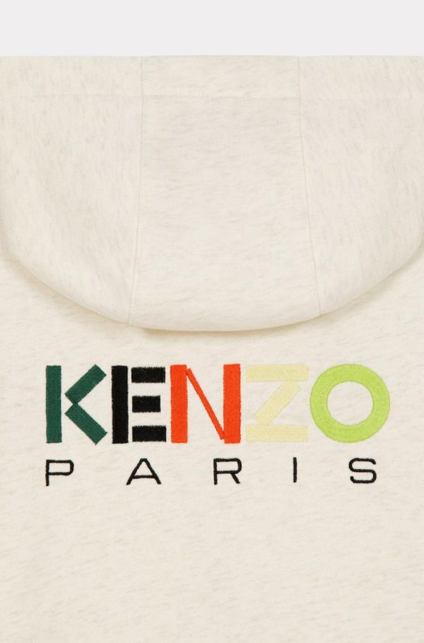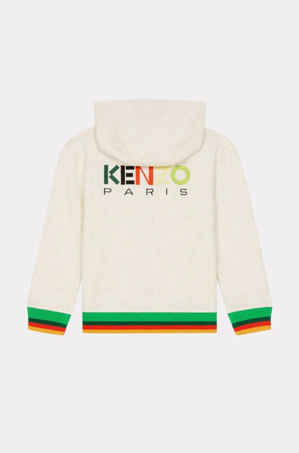 Ce sweatshirt séduit avec son bord-côtes rayé. Muni d’une capuche et d’une fermeture zippée, ce modèle présente deux poches Kangourou et une broderie KENZO Paris sur la poitrine et dans le dos.